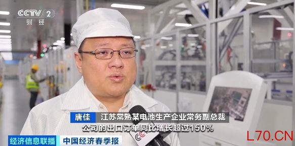 江苏常熟某电池生产企业常务副总裁 唐佳:2026年1到2月份,公司的出口订单同比增长超150%,目前产线都是满产状态。