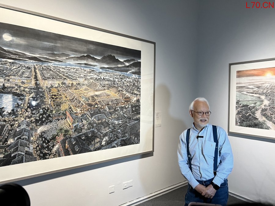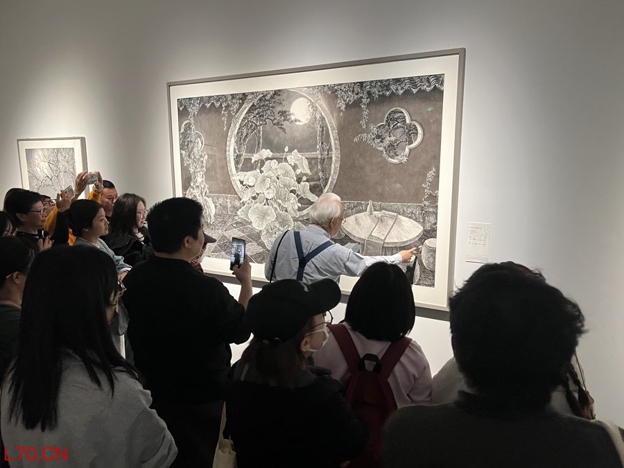 刘墉先生为观众讲解自己的作品(李扬/摄)