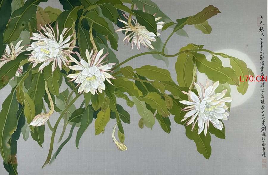 在“观物精微•体物有情”单元,视线从山河收回,落向花鸟。《更随甄宓梦鸳鸯》《月之华》《月夜琼花》《国香春融》……刘墉的花鸟,起笔于科学的观察——敏锐、细致,于分毫间洞悉物理。一花一蕊,一爪一喙,呼吸张弛,轻灵含情。但不止于逼真。他“移情入物”,抛却形似羁绊,让“我”融进物里,终至物我两忘。于是,花鸟不再是花鸟,而是情感寄居的壳,是生命与宇宙的轻微共振。