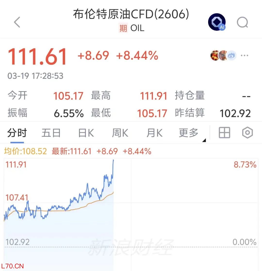 3月19日傍晚,国际原油直线拉涨,截至北京时间17:30,布伦特原油期货猛冲,目前涨幅扩大至8.44%,站上110美元/桶上方。美国WTI原油也站上96美元/桶上方。