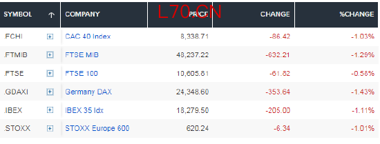 截至伦敦时间上午 9:30(美国东部时间凌晨 4:30),欧洲斯托克 600 指数下跌超 1.1%,欧洲主要交易所与各行业板块全线飘绿。